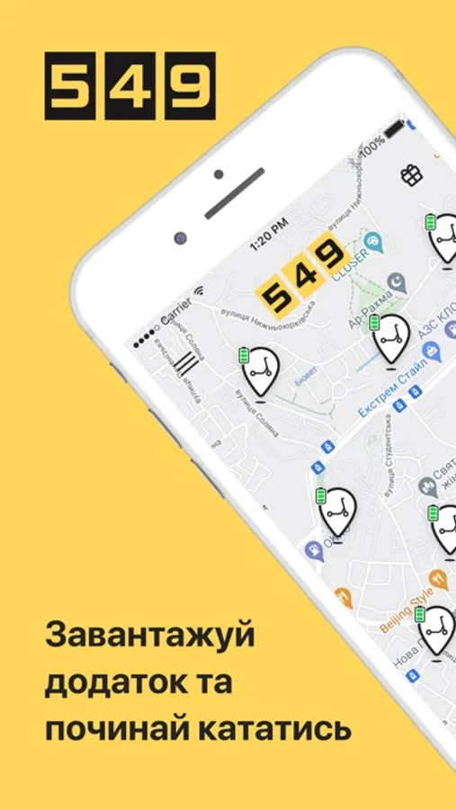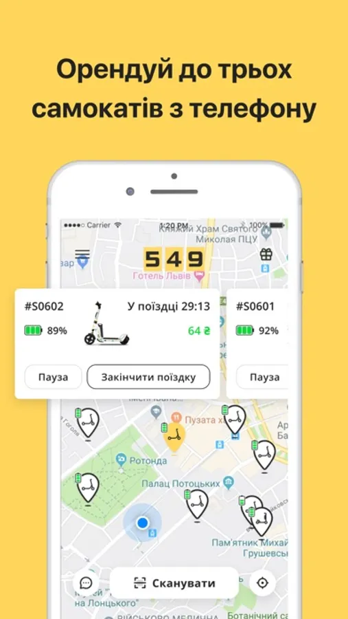 549 Самокати сервіс з прокату самокатів за допомогою мобільного додатку.