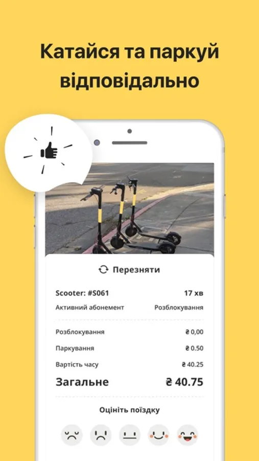 Ви можете орендувати електросамокат та завершити оренду там де вам зручно.
