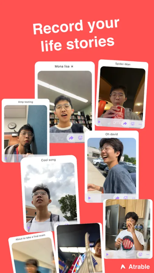- Record your happy / sad / exciting / depressing / casual / ... stories using audio and video.