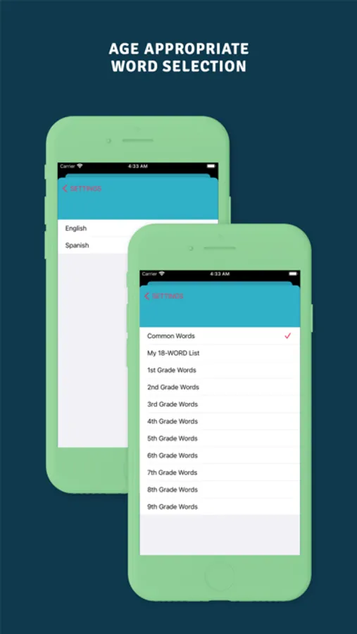 * Grade and age appropriate word selection (Adults plus Kindergarten through 9th grade targeted, 5-letter word lists).
