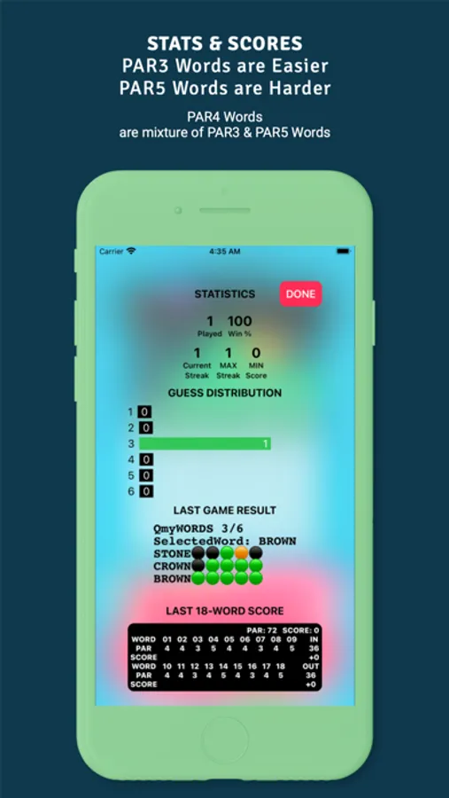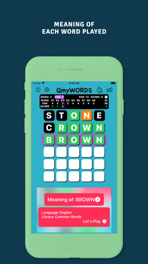 * Ability to select difficulty level from PAR 3 (easiest to solve words) to PAR 5 (harder to solve words).