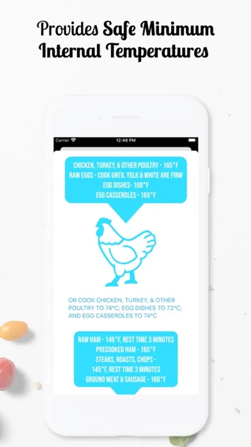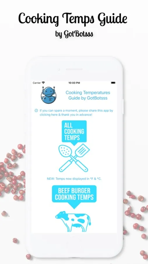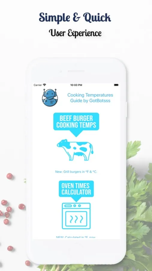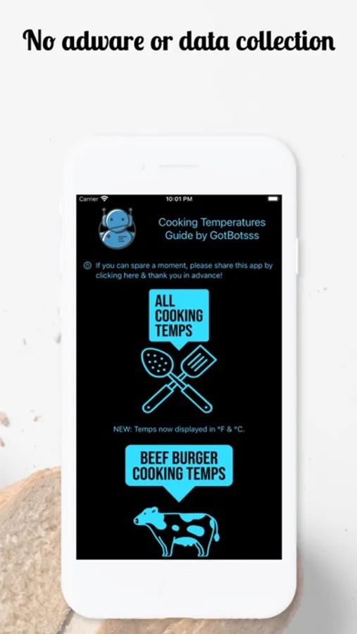 An app designed to quickly provide you with recommended cooking temps for common foods in °C and °F, based on the US safe minimum internal temperatures provided on foodsafety.gov. It also features a time & temperature oven calculator to help you estimate how long your meal will take to cook at a given temperature in your oven, calculated in °F but displayed in °F and °C. No adware or marketing or data collection of any kind with this app, just pure functionality and simplicity! Enjoy!