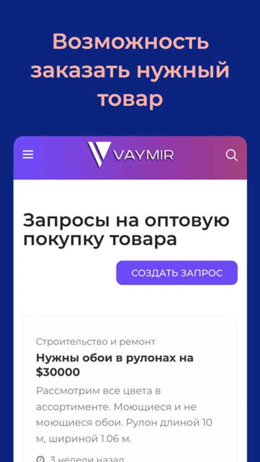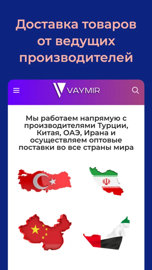 Вы можете ознакомиться с полным ассортиментом товаров и поставщиками — скачайте приложение Vaymir и найдите все, что вам необходимо!