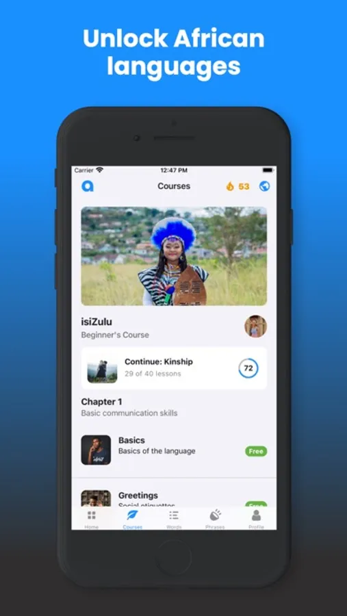 Unlock the beauty of 9+ African languages and immerse yourself in their captivating rhythms and melodies. Angula is your passport to an authentic language-learning experience, offering bite-sized lessons that are expertly crafted for quick and effective learning. Whether you're a seasoned language enthusiast or just starting your journey, Angula provides the tools you need to connect with the heart of Africa through its languages.