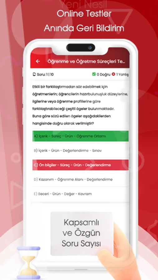 Çözdüğünüz testlerin cevaplarını anında görüntüleyerek, dilerseniz testleri tekrar tekrar çözebilirsiniz.