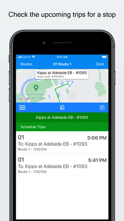 • displays upcoming bus information