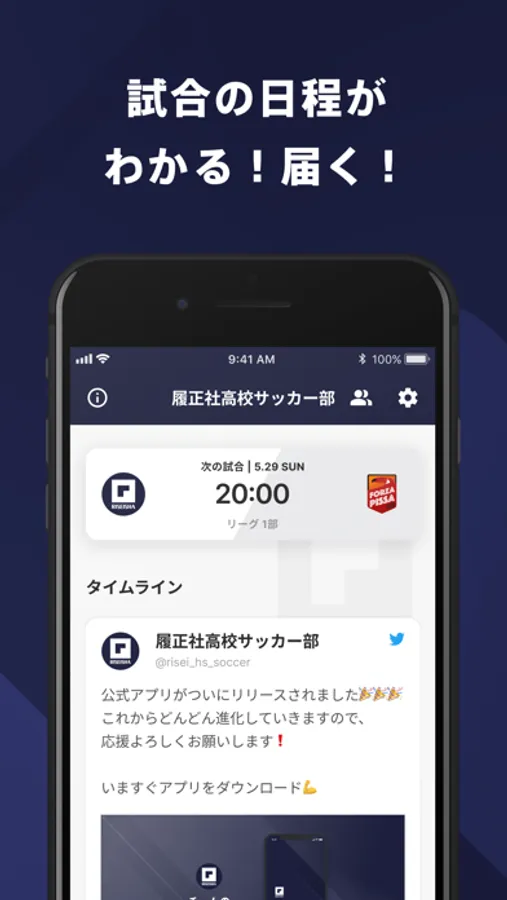 アプリを通じて、チームとの距離がぐっと近くなる。仲間が増える。チームをもっと好きになる!