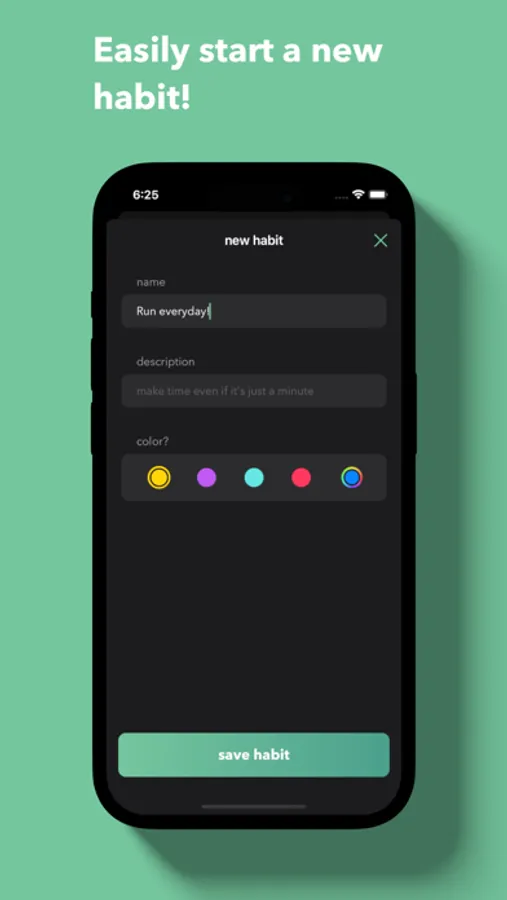 * Customize each habit with a name, description and color