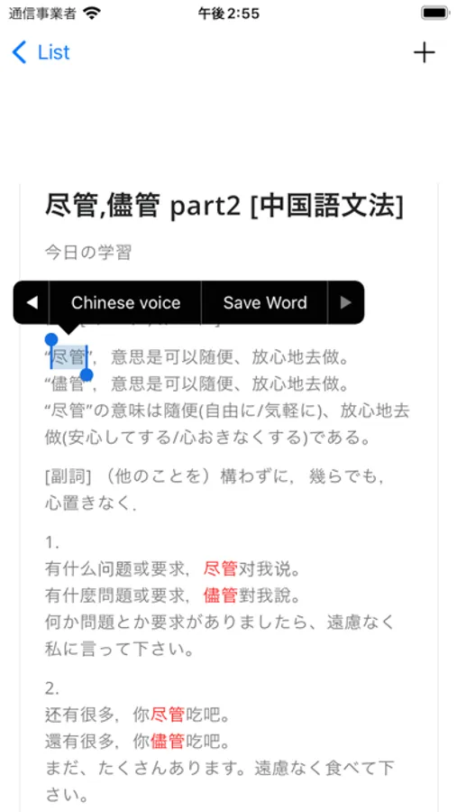 気に入った記事、気いった単語、気に入ったフレーズは保存ができ、音声の読み上げもすることが可能です。