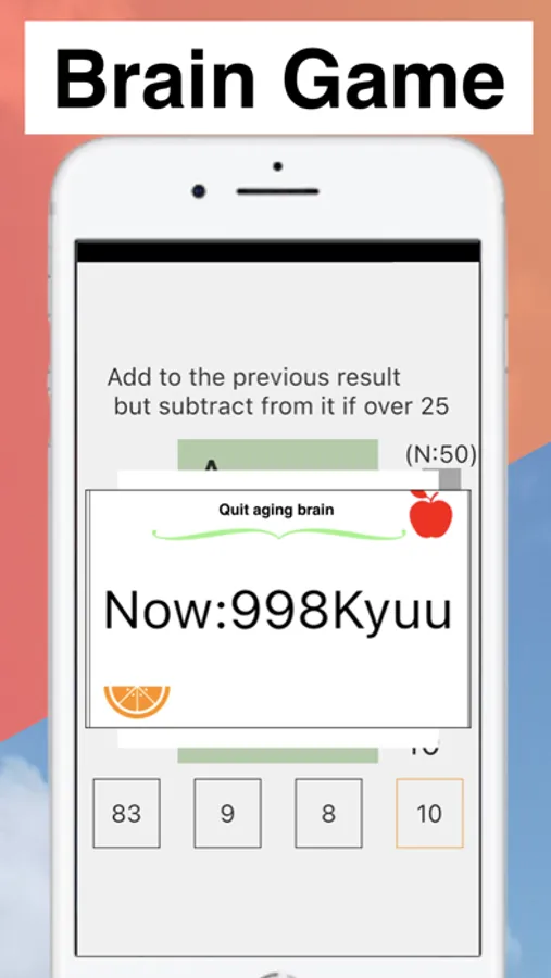 Fun brain game for seniors : Simple calculations are sublimated into brain exercise game with simple rules. Senior people who like brain exercise, or young people looking for a new brain exercise, please try this senior brain game.
