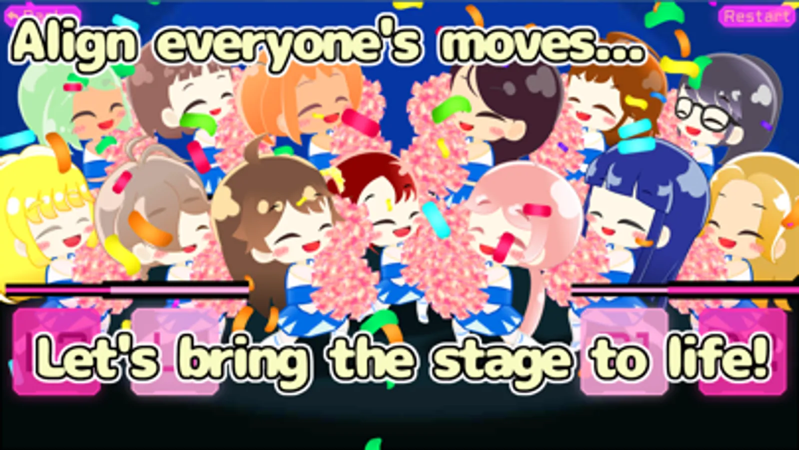 Tap the keys in time to the rhythm so that all 13 dancers can move in unison.