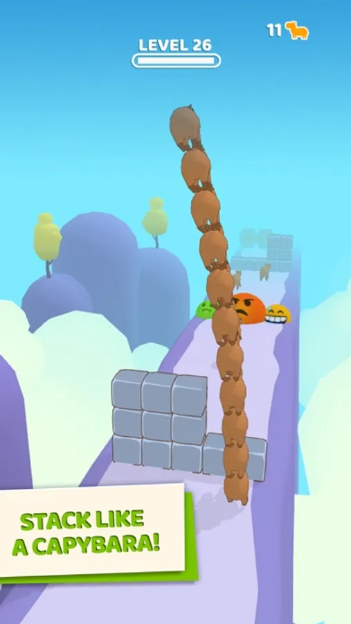 Collect oranges, ice cream, bananas, and secret letters to unlock awesome capybaras.