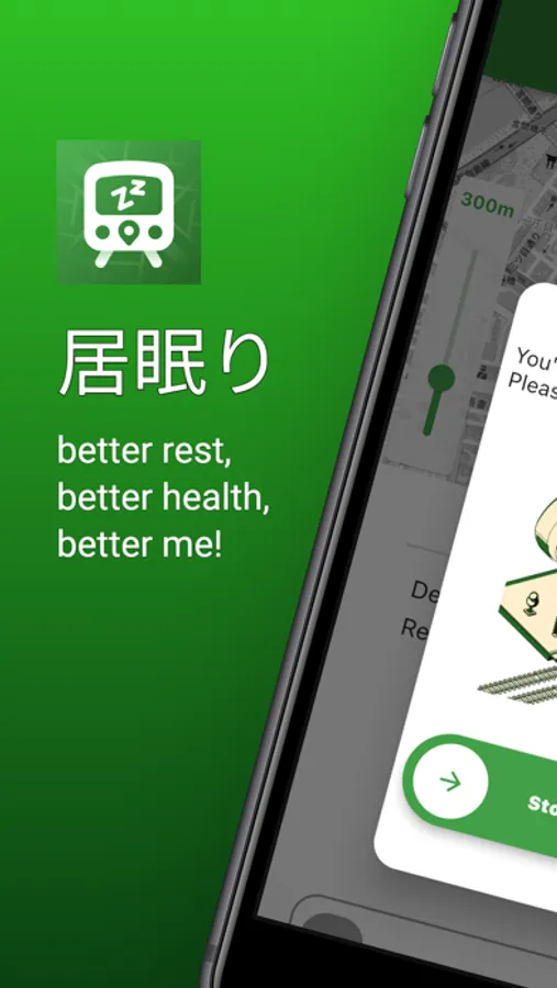「居眠り」wakes you up with a vibration and/or alarm sound when you approach your desired station.