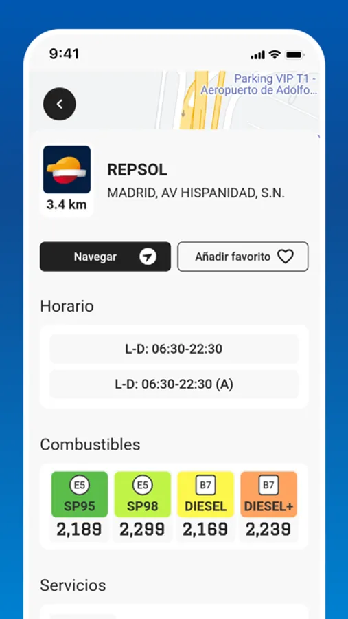 Puedes guardar tus estaciones de servicio favoritas para tenerlas siempre a mano. De un vistazo podrás comprobar las gasolineras baratas. También tendrás acceso al horario y servicios que ofrece.