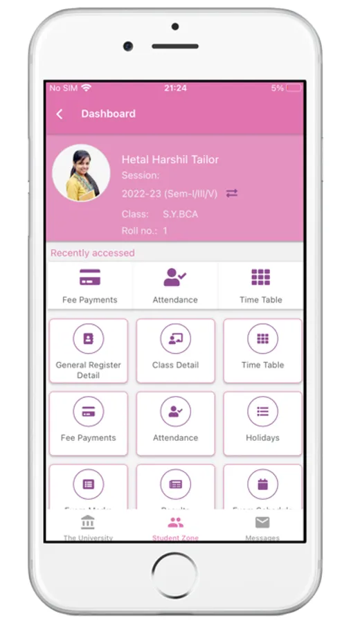 (2) Student Zone - Student can see his/her academic records in this section. For example - General Register details, Time Table, Attendance, Exam Schedules, Fee Payment details etc. Students will have to register into the app using the same mobile number which is supplied for college General Register record.