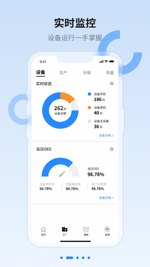 有数工厂App的用户只需点点手机,就能实现现场设备实时监控、生产进程全面掌握、质量管理严格把控、库存数据及时获取等,通过手机随时随地掌握全厂真实准确及时的生产实况,实现灵活全面有效管理,全面激发工厂活力,在移动端为企业管理层提供更好更优的用户体验!