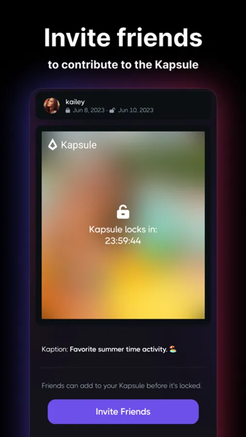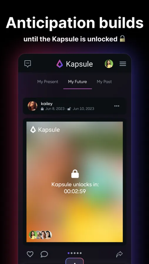 Create. Share. Wait. Reveal. With Kapsule, you don't just capture memories; you create a whole new experience of anticipation and surprise. Download the Kapsule today and enkapsulate the moment.