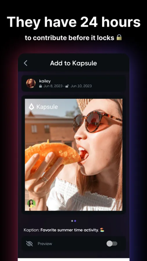 • They'll have 24 hours to contribute their photos, enriching your memory before the time capsule locks.
