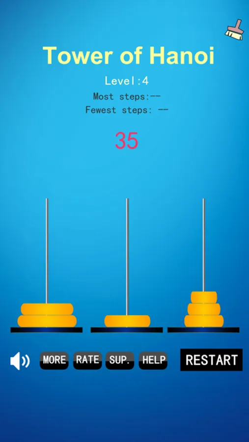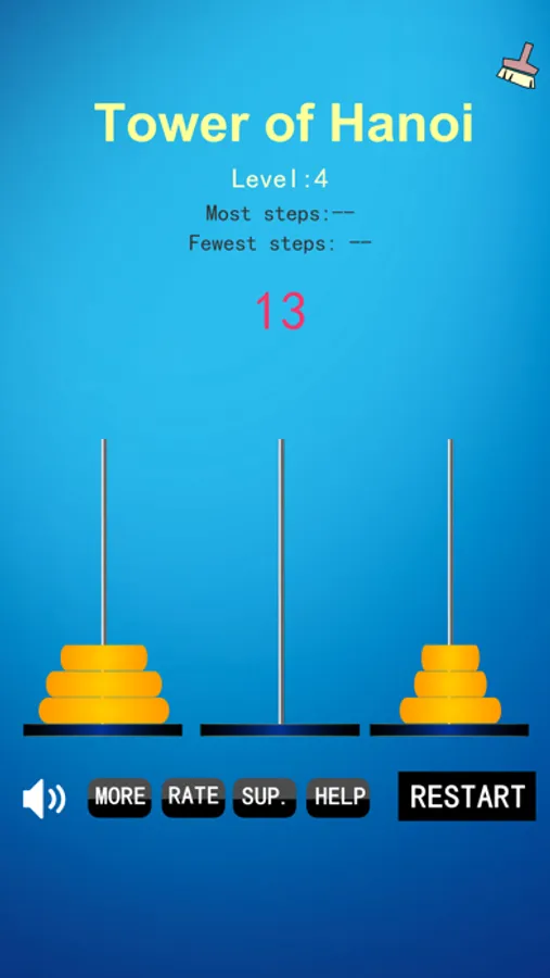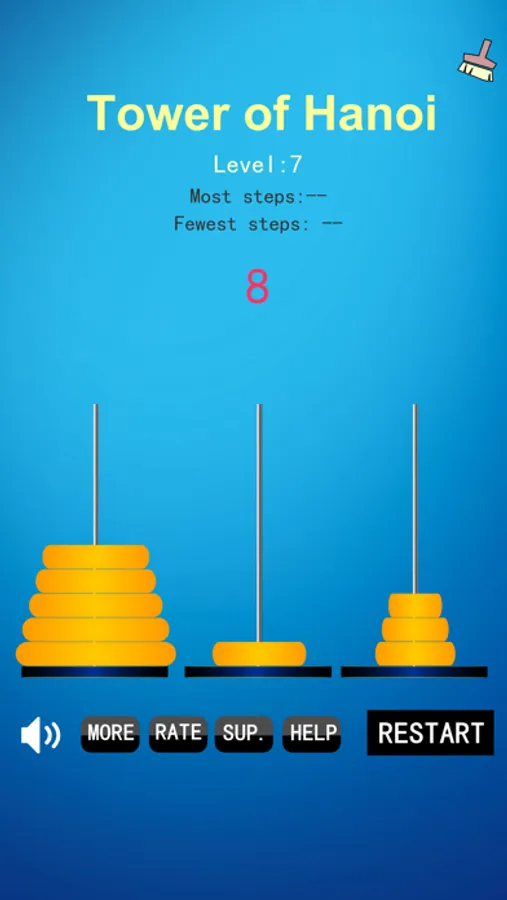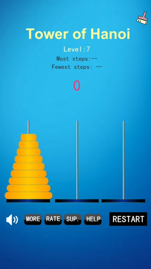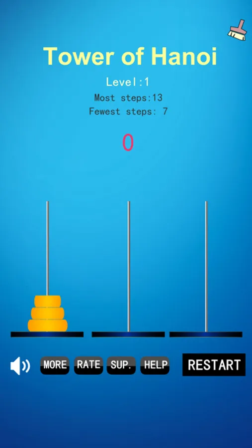 The Tower of Hanoi game is a very clever and interesting puzzle game, how to play: move the disc on the left pillar to the right column with the least number of steps, each move can only move the topmost disc and must be on the larger disc when it is lowered.