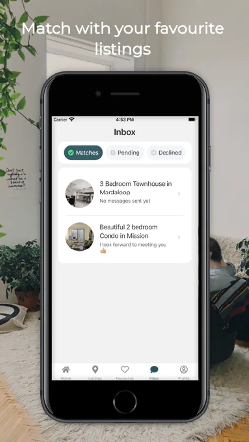 Save your favourite listings to come back to later and view your inbox based on listings you’ve successfully matched with, those you’ve expressed interest in that are pending response, and those where a match was unsuccessful.