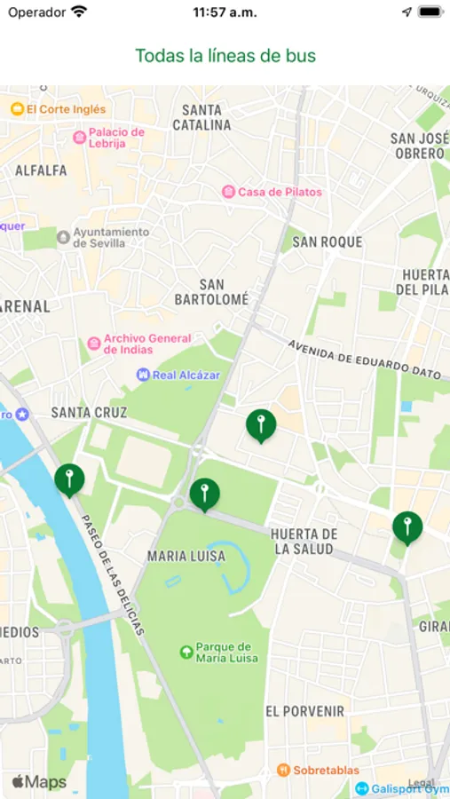 Puedes moverte por el mapa y consultar todas las paradas cercanas, una vez seleccionada, puedes ver que líneas pasan por estas paradas para consultar sus horarios.