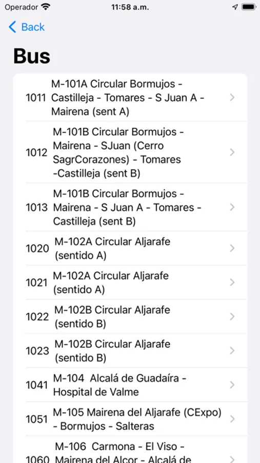 También puedes consultar tus líneas organizadas por tipos de transporte, busca en la lista la línea que quieras.