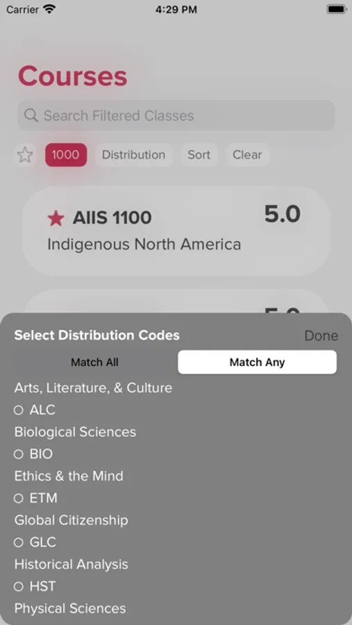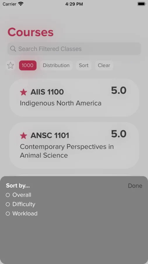 Choose from a variety of filters to find the top-rated classes for you. Select as many distributions as you want to see the courses that fulfill all of them. Sort by user ratings and engage with discussion forums for every class.