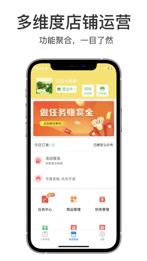 叮个饭商家是为入驻叮个饭外卖的商家量身定制的管理软件,是可以在ios平台使用的应用程序。主要功能是接收并处理用户订单,处理退款,账户在线结算,管理叮个饭外卖的门店,随时调整营业信息,商品库存等。让你轻松管理店铺!