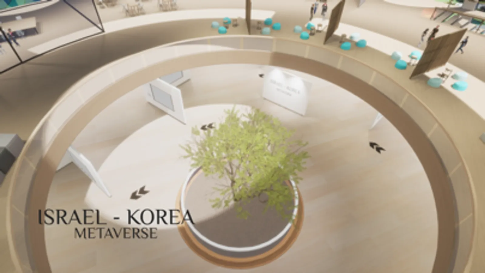 ברוכים הבאים לביתן הווירטואלי של שגרירות ישראל בקוריאה. מבנה הביתן מזכיר את היכל הספר של מוזיאון ישראל ירושלים וכולל שתי קומות. בכניסה לאפליקציה תוכלו ליצור את האווטאר הייחודי שלכם שיתקיים במרחב המטהוורס וייצג אתכם מול משתתפים אחרים מקוריאה. בכניסה לבניין, האווטאר של איינשטיין יקבל את פניכם ויסביר על הפונקציות של המטהוורס. קומת הקרקע מורכבת מגלריה המציגה תערוכת תמונות המתעדות רגעים מיוחדים ביחסים הדיפלומטיים בין ישראל לקוריאה במהלך 60 השנים האחרונות. הקומה השנייה של הביתן מיועדת למפגשים חברתיים וכנסים שייערכו בחדר ישיבות הנקרא E=MC2. האפליקציה הוקמה ככלי דיפלומטיה ציבורית של השגרירות לקיום אירועים משותפים בין הקהל הישראלי והקוריאני. הפלטפורמה של המטהוורס מוסיפה עוד ערוץ תקשורת ללמידה והיכרות הדדית בנושאי חינוך, תרבות, מדע וטכנולוגיה, אומנות, היסטוריה, פנאי ועוד.