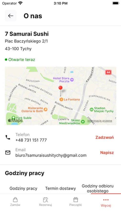Oprócz zamawiania online aplikacja pozwala sprawdzić: