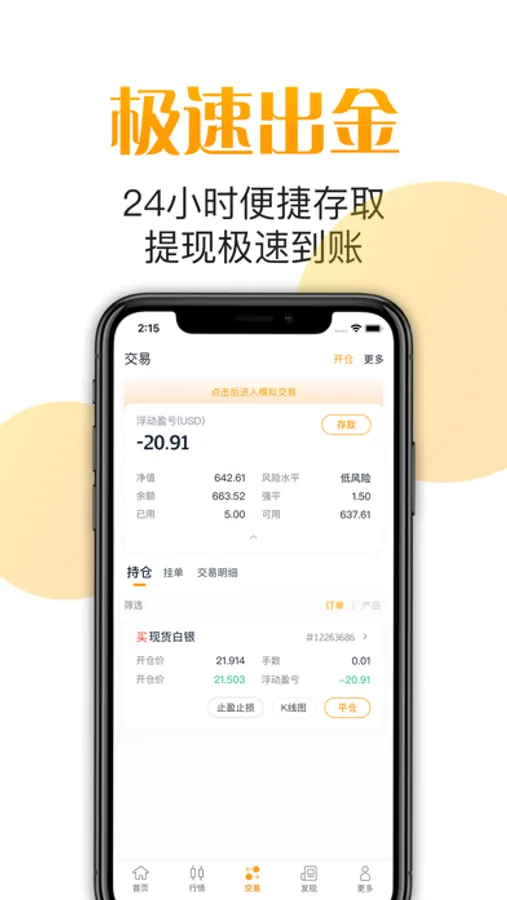 银联便捷入金,24小时注金即时到账,提现速度快,出金30分钟到账。