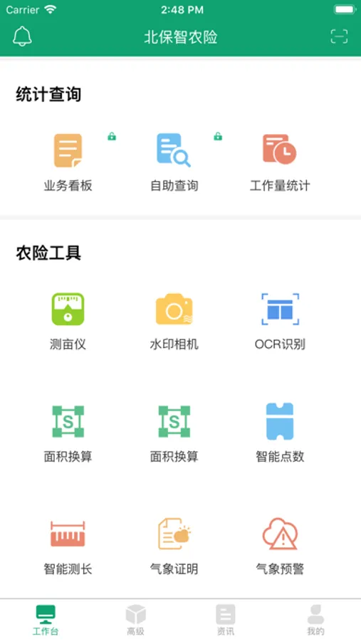 【移动验标】“北保智农险”提供了承保采集、客户采集、查勘采集、标的精准定位、空间水印相机、照片二维码扫描、测亩仪、证件与银行卡OCR识别、AI智能点数、AI智能测长、牛脸识别、猪脸识别、工作量考核等功能,帮助各机构降低经营成本、提高工作效率、规避道德风险。