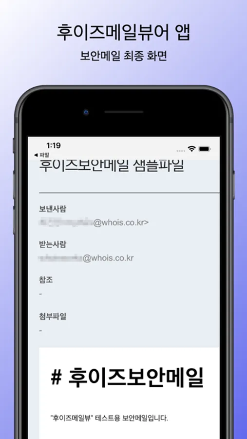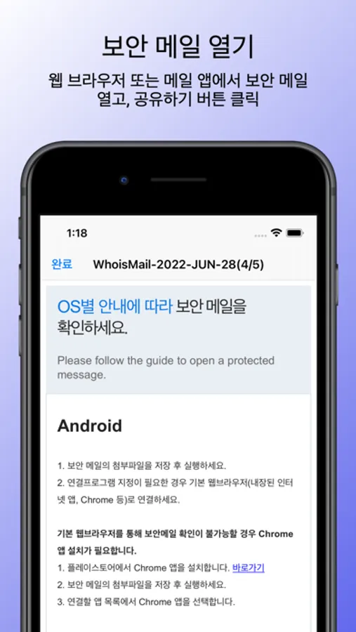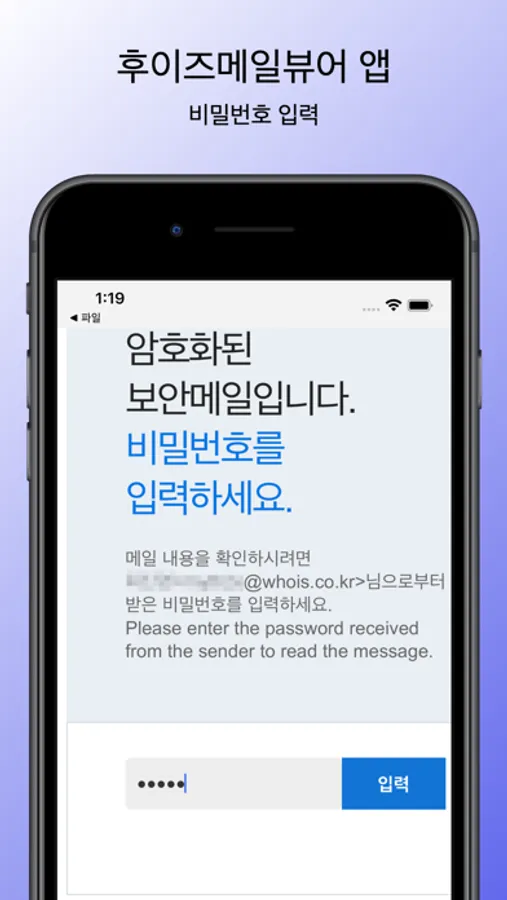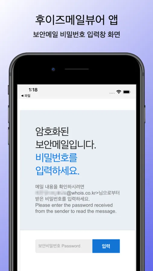 WhoisMailViewer App helps users to open the secure mail sent by the user using WhoisMail and check the contents by entering the separately delivered security password.