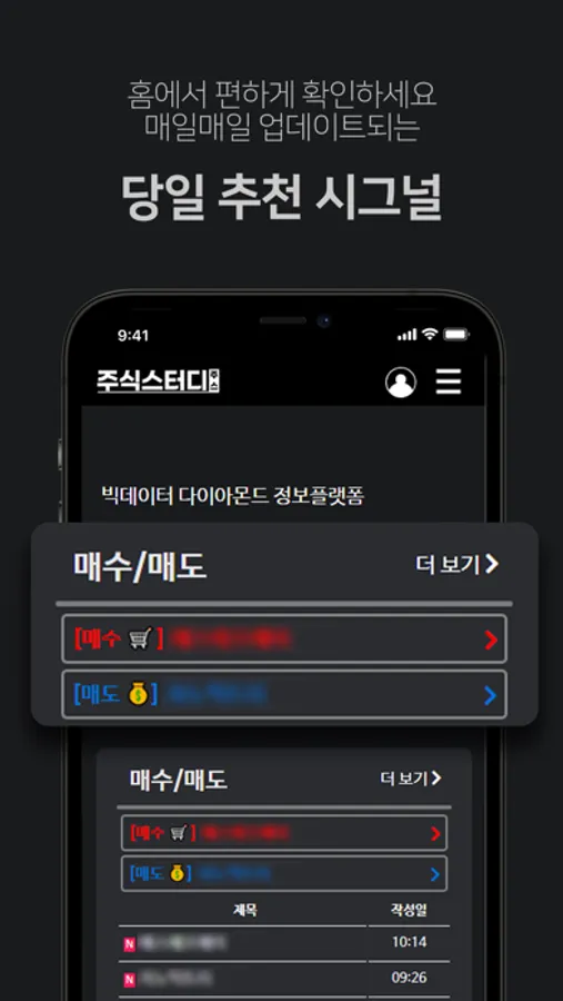 실시간 시장의 움직임과 종목/수급 데이터 분석을 통해 매수매도 시그널 / 투자포인트 / 기술적분석 제공.