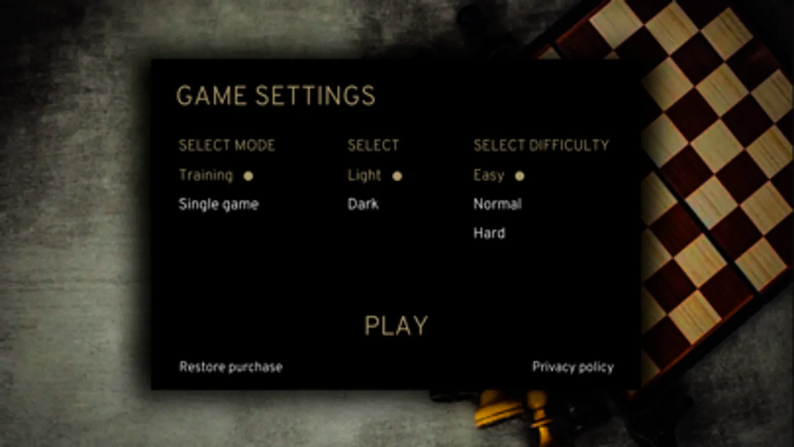 - Choose your pieces’ color: black or white. If you choose white pieces, you’ll go first.