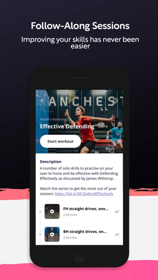 SquashSkills Training is a unique app focused on improving your technique and squash-specific fitness. Our ready-made training sessions are tried and tested, created by our team of top coaches to help progress your game with simple yet effective training techniques.