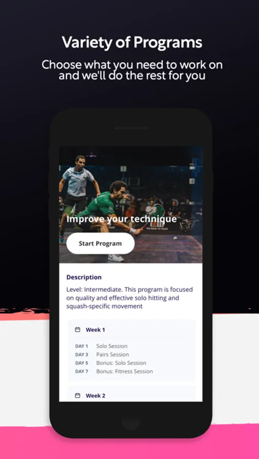 SquashSkills Training is a unique app focused on improving squash players’ technique and squash-specific fitness. Our ready-made sessions are simple and easy to use, allowing you to focus on pushing your game to the next level.