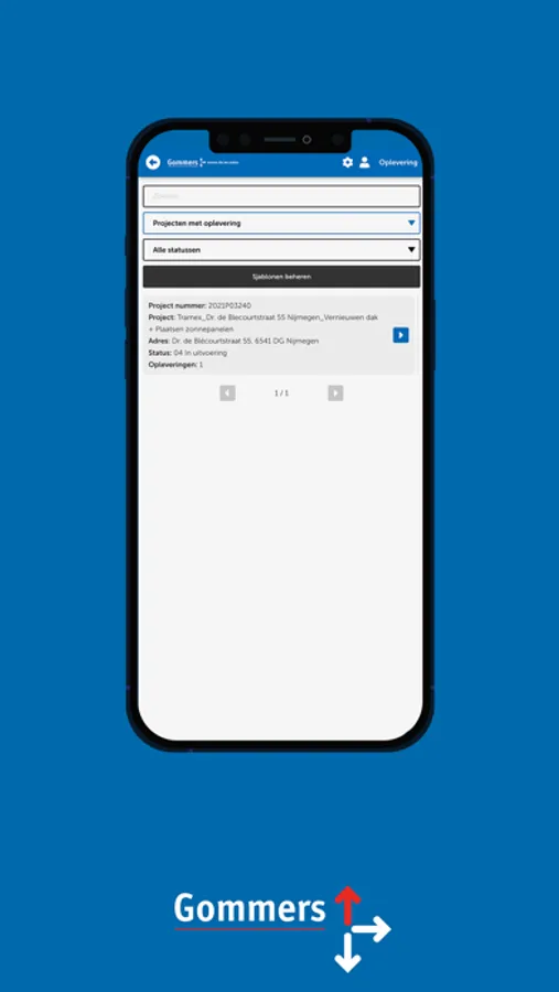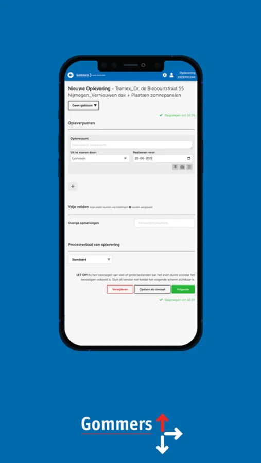 Doormiddel van de Gommers app kunnen medewerkers projecten opnemen, tussentijdse opnames uitvoeren en opleveren.