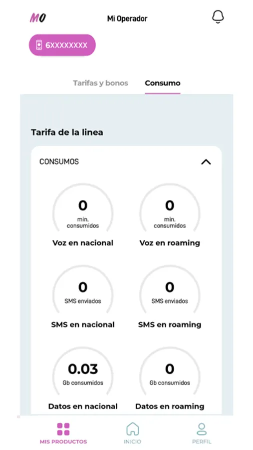 - Ver en tiempo real tu consumo de gigas, minutos, SMS enviados y otros consumos extras, como llamadas no incluidas en tu tarifa (llamadas a números 90x o llamadas internacionales).