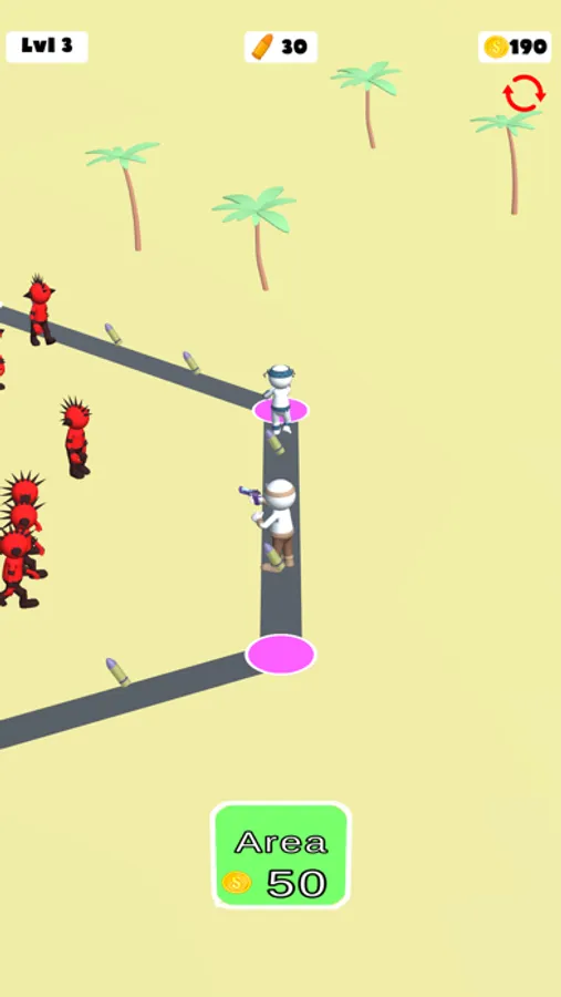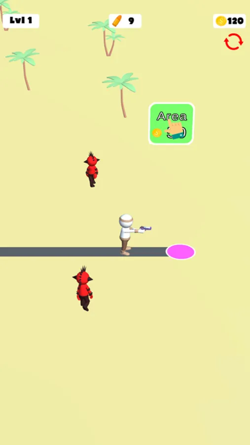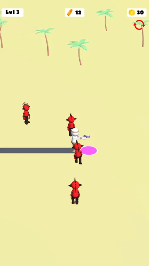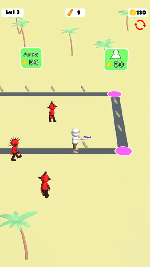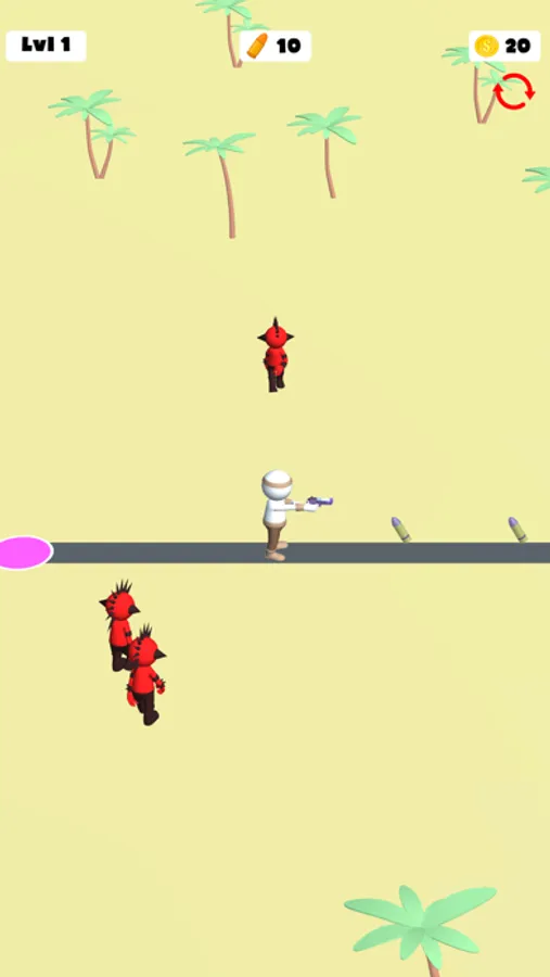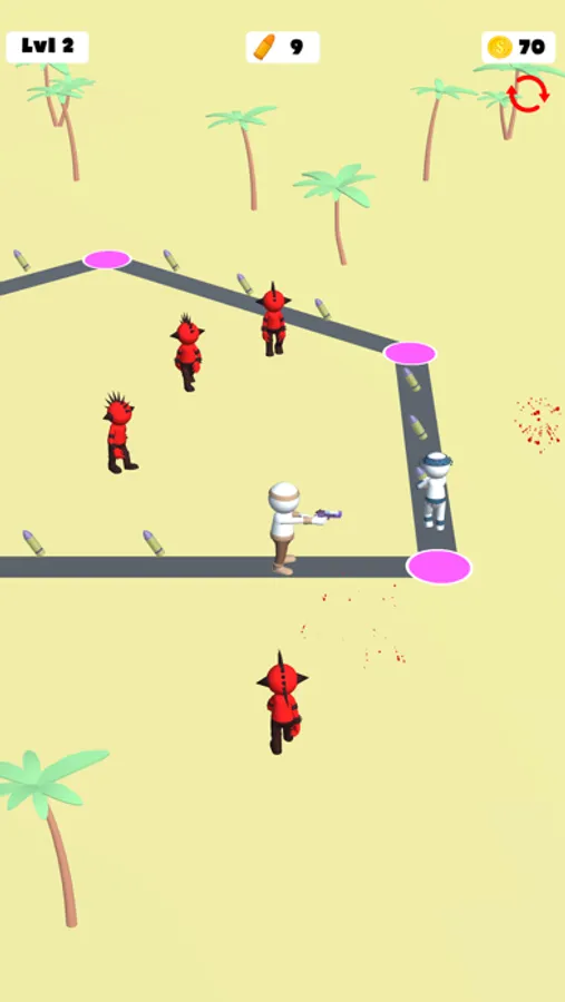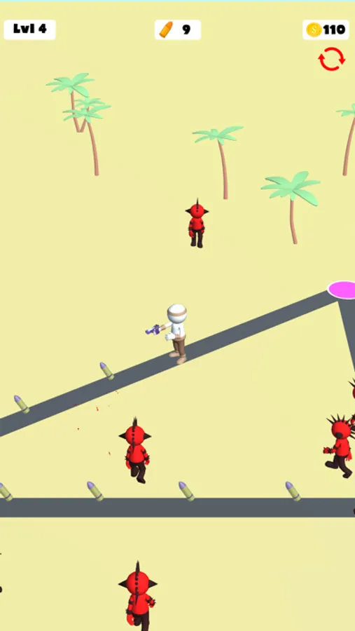 Run around, collect bullets and kill the enemies. Get new ways with earned coins and keep killing enemies.