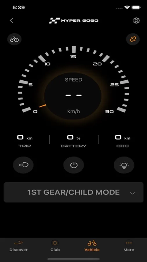 2. Through Bluetooth connection to the Hyper GoGo Scooter, the App can show the vehicle's power, speed, TRIP, ODO and so on.