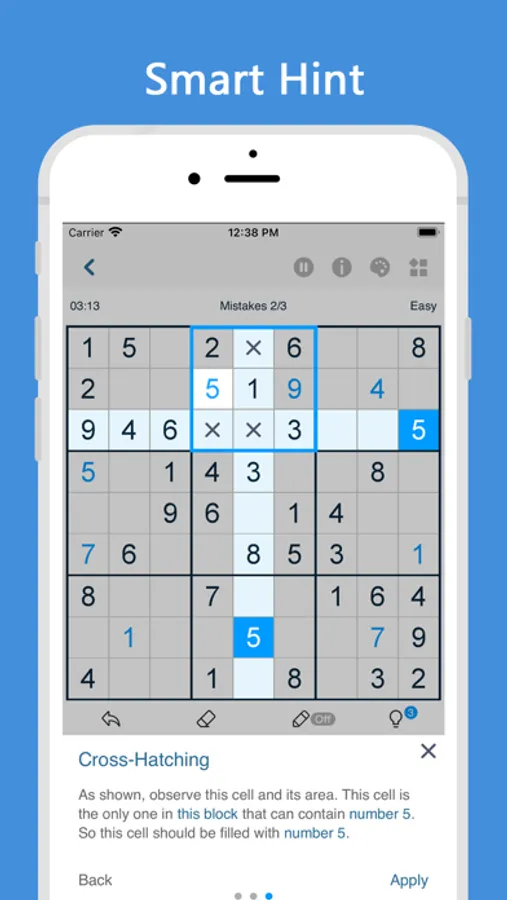 - The Smart Hint function shows the thinking step of solving puzzles and users can learn sudoku techniques easily from it.