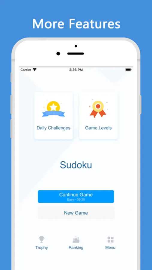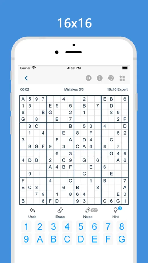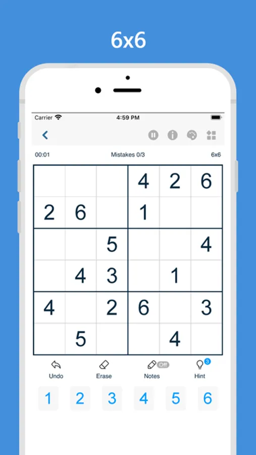 - There are three types of Sudoku puzzles: 6x6, 9x9 and 16x16, suitable for both beginner and advanced players.