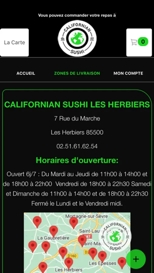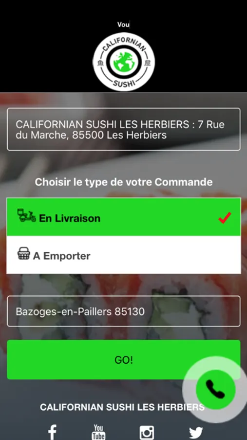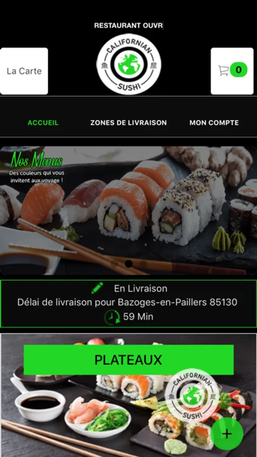 L'application CALIFORNIAN SUSHI vous permet de commander en ligne ou par téléphone via votre application. Vous pouvez consulter notre carte et choisir vos produits.