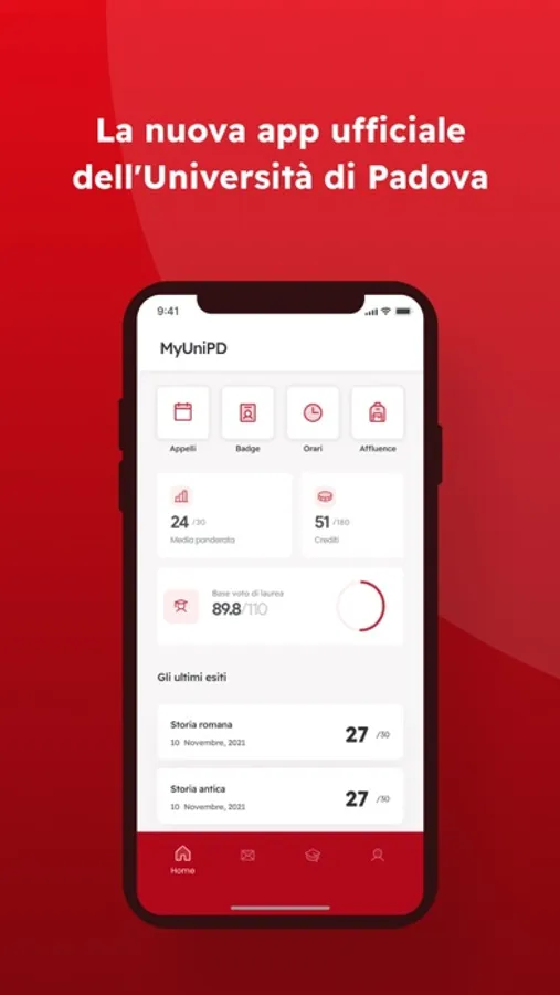 MyUniPd è la nuova app ufficiale dell’Università di Padova che ti consente di gestire la tua carriera universitaria in maniera semplice e veloce attraverso il tuo smartphone o tablet.