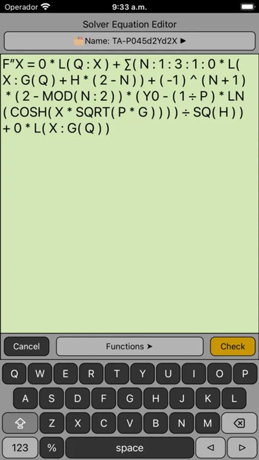 Solve arbitrary algebraic equations entered and saved in the equation editor and creates a menu with all the variables to solve any of them.