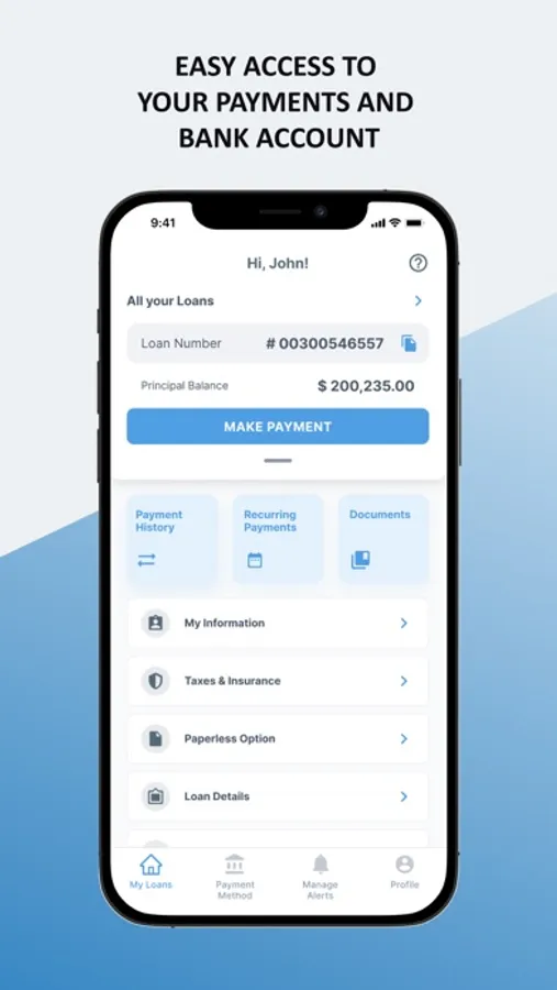 • Go Paperless and secure your personal data while having all of your mortgage documents at your finger tips