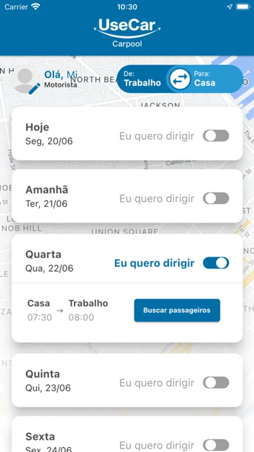 Com o UseCar Carpool você pode deixar o seu carro em casa e pegar um carona para o trabalho. Além disso, contribui com a cidade pois onde antes 2 carros iriam sair, agora apenas 1.