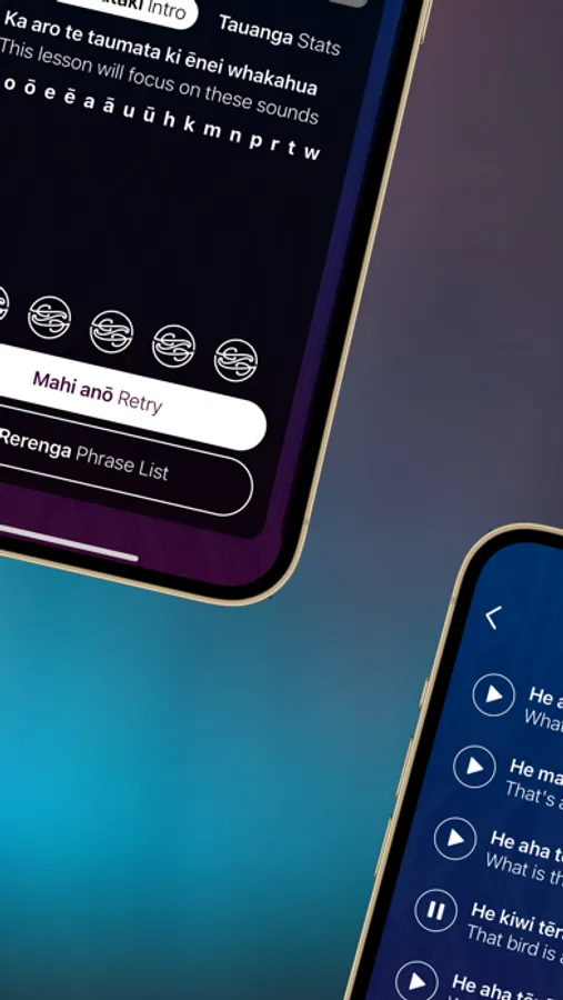In the houses of learning of long ago, students would sit in the darkness while the tohunga (expert) would recite lines of genealogy that spanned many generations. The students would learn by focussing on the words, retaining that knowledge and practice by reciting it themselves. Rongo aims to recreate this experience.By stripping away the written word, you must focus on the sounds of the language and work towards reproducing them, without being influenced by what you have read and, therefore, your existing bank of sound knowledge