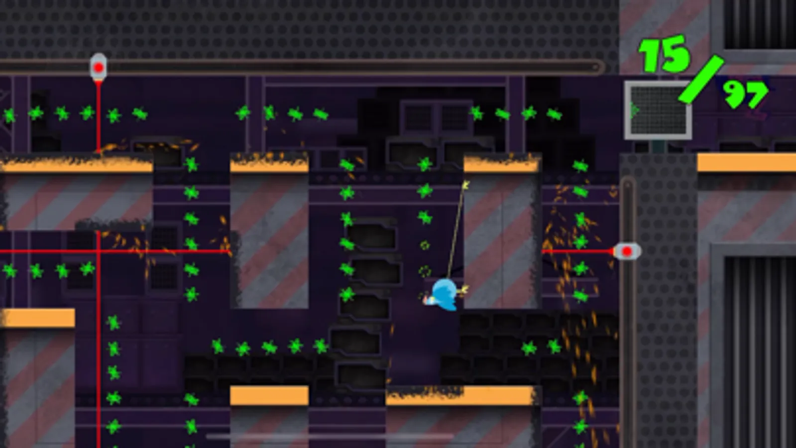 Test your twitch reflexes over 71 levels of spinning saw blades, smashy-bashy stompers and bantam-blasting laser beams. Hoover up those glowing green nucleoids along the way, liberate the helpless baby nuggets and bring the nefarious Nibz Corporation crashing to the ground... for finger-lickin' good!